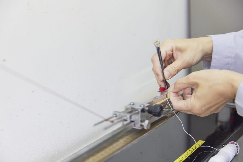 引張試験、撚り数(よりすう)、乾熱収縮など必要に応じて検査を実施します
