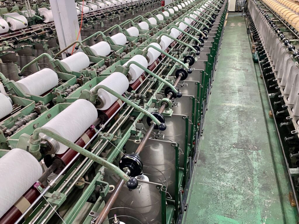 複数本の糸を並行に引き揃えて一本の糸として巻き取る工程です。
